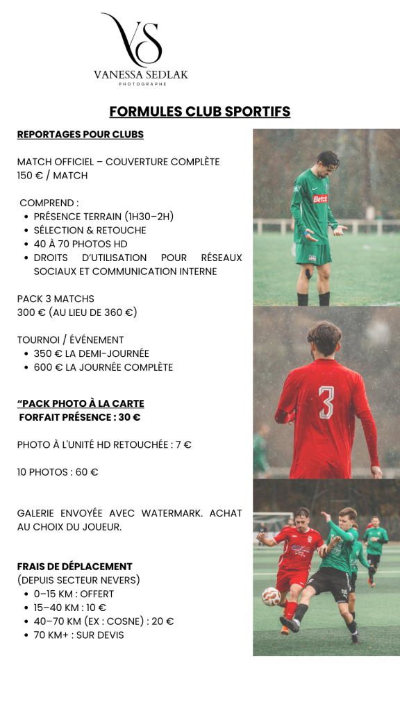 Vous trouverez ici mes tarifs photographe mariage, ainsi que mes formules famille, sport, animaux et corporate. Basée en Nièvre, je me déplace partout en France pour raconter vos histoires à travers des images élégantes et intemporelles.